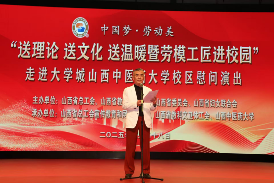 此次活动是山西省总工会落实构建大宣传格局及“山西工人大思政课”工作部署的重要举措,旨在强化师生思想政治引领、推动师生文化建设。活动现场,申明远教授作为省五一劳动奖章获得者,以“做有温度的中医药传承与传播者”为题开展宣讲,将中医药文化传承与劳动精神相融合,为现场师生带来深刻启发。参会师生不仅近距离感受了劳模工匠的风采,也在“送理论、送文化、送温暖”的氛围中,深化了对劳动精神与校园文化建设的认知。