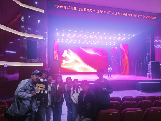 9月28日山西中医药大学学生活动中心内气氛热烈,山西省总工会主办的“中国梦·劳动美--送理论、送文化、送温暖暨劳模工匠进校园”慰问演出走进大学城山西中医药大学校区。大学城九所高校的工会组织参加了此次活动。我校工会主席王淑娟带队,“五一劳动奖章获得者”申明远教授及播音主持学院学生代表十余人参与活动。